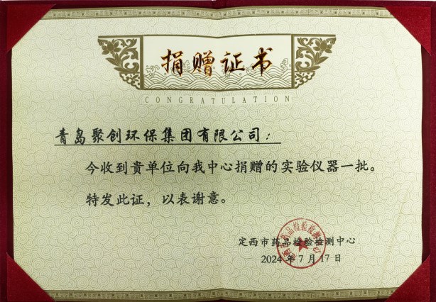 近日,聚創集團參與青島市幫扶定西市食藥產業檢驗檢測能力提升暨青島?定西大型檢驗檢測儀器設備捐贈活動,并收到定西市藥品檢驗檢測中心表達感謝的捐贈證書。